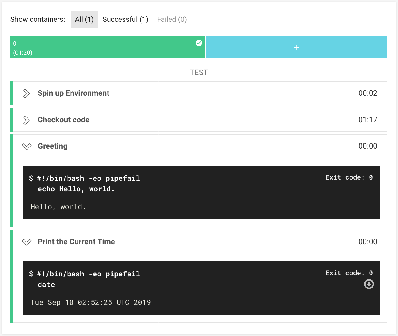 Note: once your build system stabilizes, you’ll likely want to set up your own docker images with your compiler pre-installed so you do not have to incur the cost of download + installation on every build. For now, this is good enough.
