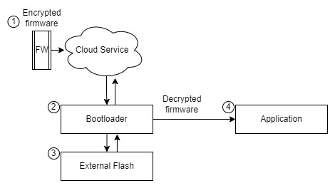 Certainly, if you have the option to use a recommended bootloader like MCUBoot1 that supports firmware image encryption, it is highly advisable to utilize it. However, if you need to implement a custom bootloader, this publication aims to serve as a starting point for implementing firmware image encryption.