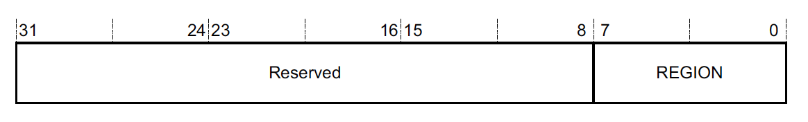 As we saw in the MPU_TYPE register above, the MPU is broken into a certain number of configurable-regions. The M0+, M3 & M4 can support up to 8 regions when the MPU is implemented and the M7 can support up to 16! The REGION field is used to select the active region we want to read or update. Once the region is selected, we can read or write MPU_RBAR & MPU_RASR to see the configuration and make changes.