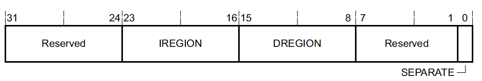 MPU_TYPE - Address 0xE000ED90 register bit assignments: